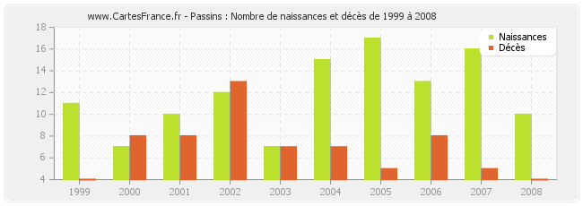- Population de Passins de 0 à 14 ans : 222 habitants