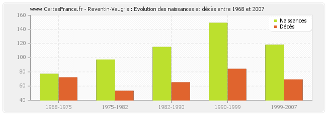 Reventin-Vaugris : évolution des naissances et décès de 1968 à 2007