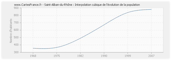 Cette courbe reprend l'historique de la population de Saint-Alban-du-Rhône de 1968 à 2007 en interpolation cubique. Ceci permet d'obtenir plus précisément la population de la commune de Saint-Alban-du-Rhône les années ou aucun recensement n'a été effectué.