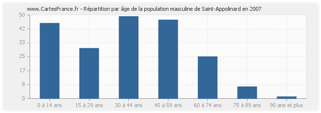 - Hommes de 0 à 14 ans habitant Saint-Appolinard : 45
