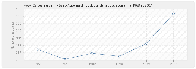 Cette courbe reprend l'historique de la population de Saint-Appolinard de 1968 à 2007 en interpolation cubique. Ceci permet d'obtenir plus précisément la population de la commune de Saint-Appolinard les années ou aucun recensement n'a été effectué.