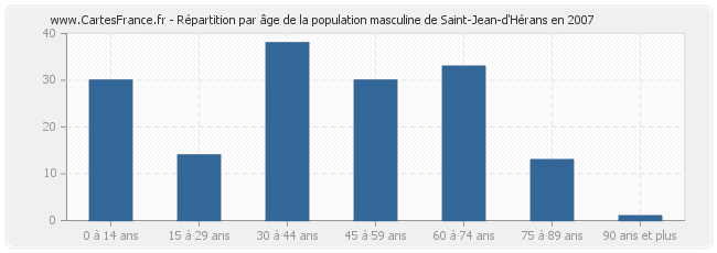 Répartition de la population masculine de Saint-Jean-d'Hérans par âge en 2007 :