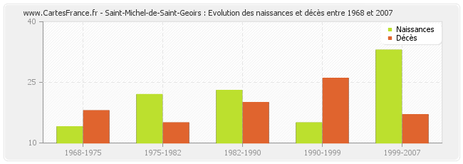Saint-Michel-de-Saint-Geoirs : évolution des naissances et décès de 1968 à 2007