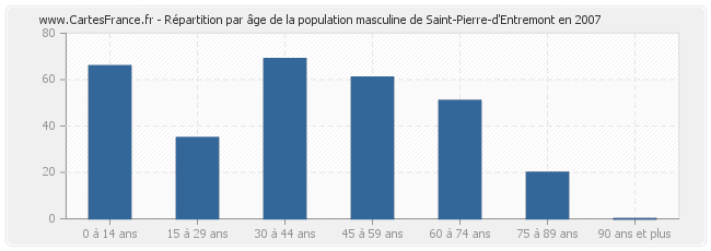 Répartition de la population masculine de Saint-Pierre-d'Entremont par âge en 2007 :