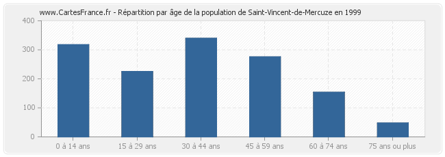 - Population de Saint-Vincent-de-Mercuze de 0 à 14 ans : 318 habitants