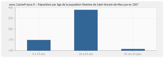 - Femmes de 20 à 64 ans habitant Saint-Vincent-de-Mercuze : 384