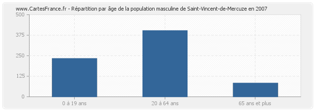 Répartition de la population masculine de Saint-Vincent-de-Mercuze par âge en 2007 :