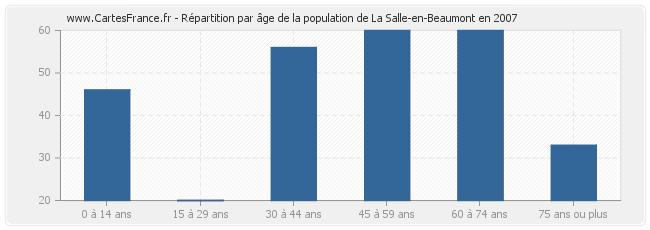 - Population de La Salle-en-Beaumont de 45 à 59 ans : 60 habitants