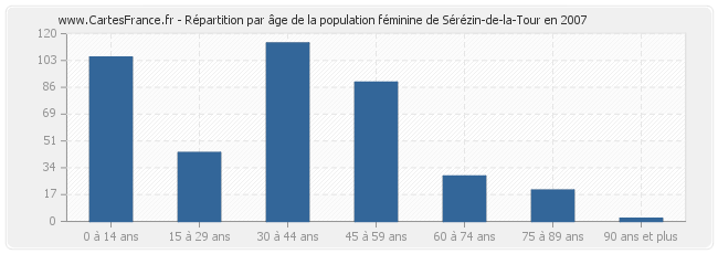 Répartition de la population féminine de Sérézin-de-la-Tour par âge en 2007 :