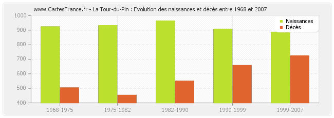 La Tour-du-Pin : évolution des naissances et décès de 1968 à 2007