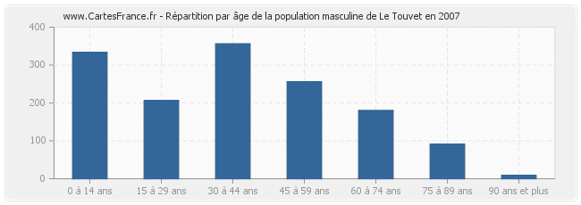 - Hommes de 0 à 14 ans habitant Le Touvet : 333
