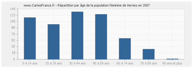 - Femmes de 45 à 59 ans habitant Vernioz : 125