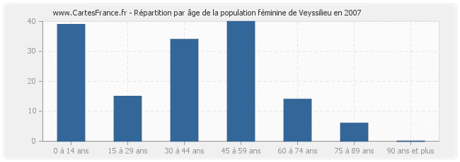 - Femmes de 0 à 14 ans habitant Veyssilieu : 39
