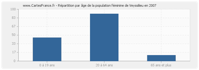 Répartition de la population féminine de Veyssilieu par âge en 2007 :