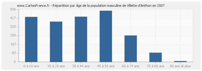 Répartition de la population masculine de Villette-d'Anthon par âge en 2007 :