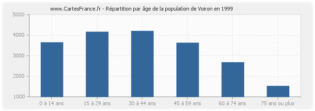 Répartition de la population de Voiron par âge en 1999 :