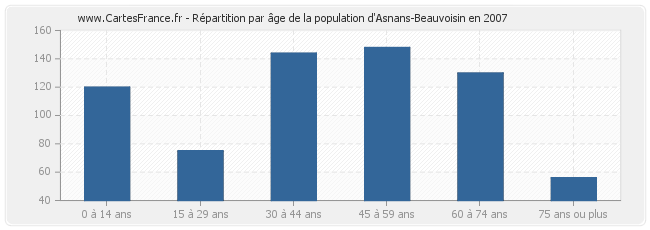 - Population d'Asnans-Beauvoisin de 45 à 59 ans : 148 habitants
