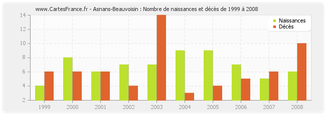 Asnans-Beauvoisin : naissances et décès de 1999 à 2008