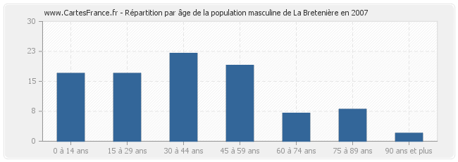 Répartition de la population masculine de La Bretenière par âge en 2007 :