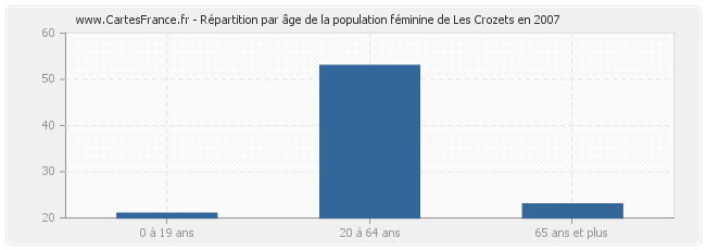 - Femmes de 20 à 64 ans habitant Les Crozets : 53