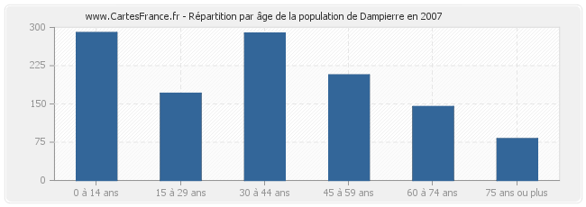 - Population de Dampierre de 0 à 14 ans : 290 habitants
