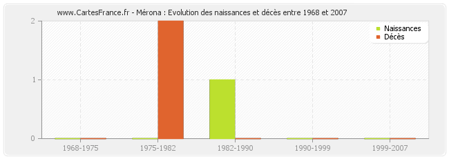 Mérona : évolution des naissances et décès de 1968 à 2007