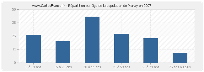- Population de Monay de 30 à 44 ans : 26 habitants