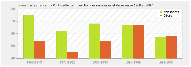 Pont-de-Poitte : évolution des naissances et décès de 1968 à 2007