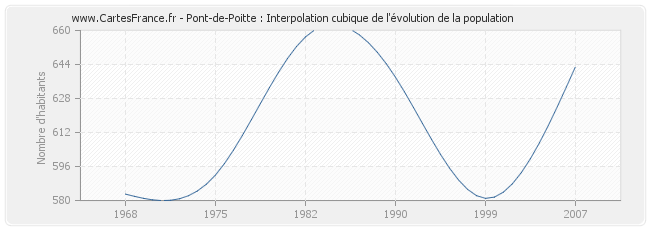 Cette courbe reprend l'historique de la population de Pont-de-Poitte de 1968 à 2007 en interpolation cubique. Ceci permet d'obtenir plus précisément la population de la commune de Pont-de-Poitte les années ou aucun recensement n'a été effectué.