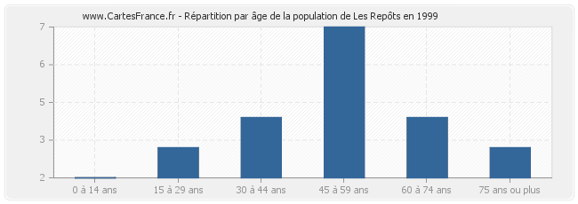- Population de Les Repôts de 45 à 59 ans : 7 habitants