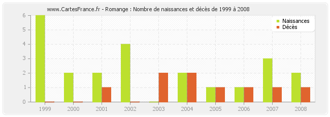 La population de Romange était de 203 habitants en 2007, 182 habitants en 1999, 154 habitants en 1990, 139 habitants en 1982, 111 habitants en 1975 et 115 habitants en 1968.