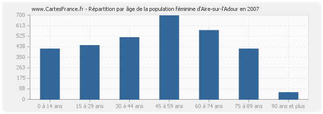 - Femmes de 45 à 59 ans habitant Aire-sur-l'Adour : 695