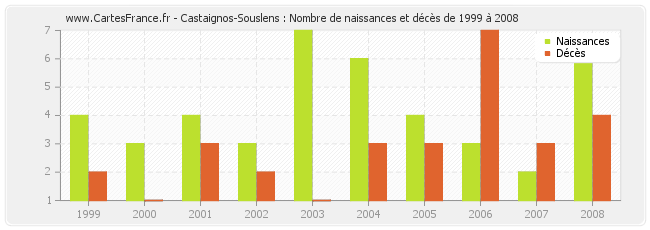 Castaignos-Souslens : naissances et décès de 1999 à 2008