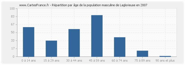 - Hommes de 45 à 59 ans habitant Laglorieuse : 86