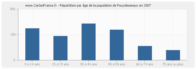- Population de Pouydesseaux de 30 à 44 ans : 214 habitants