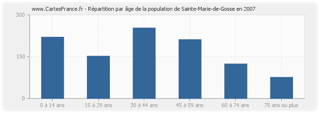 - Population de Sainte-Marie-de-Gosse de 30 à 44 ans : 253 habitants