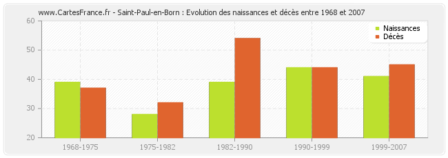 Saint-Paul-en-Born : évolution des naissances et décès de 1968 à 2007
