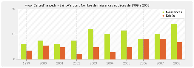 - Saint-Perdon en 2008 : 21 naissances et 10 décès