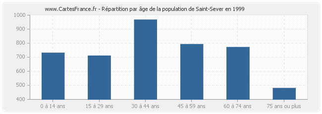 - Population de Saint-Sever de 30 à 44 ans : 966 habitants