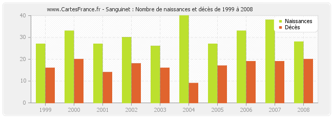 - Sanguinet en 2008 : 28 naissances et 20 décès