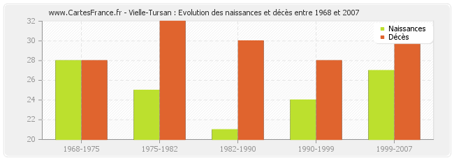 Vielle-Tursan : évolution des naissances et décès de 1968 à 2007