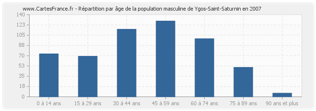 Répartition de la population masculine de Ygos-Saint-Saturnin par âge en 2007 :