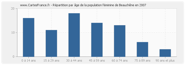 Répartition de la population féminine de Beauchêne par âge en 2007 :