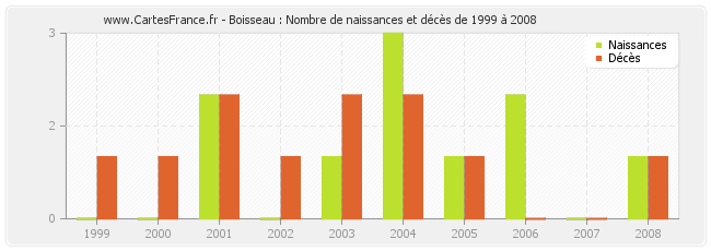 - Boisseau en 1999 : 0 naissances et 1 décès