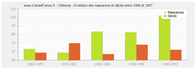 Chitenay : évolution des naissances et décès de 1968 à 2007