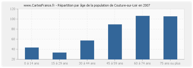 - Population de Couture-sur-Loir de 75 ans ou plus : 105 habitants