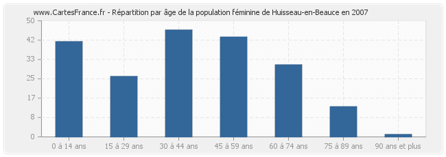 Répartition de la population féminine de Huisseau-en-Beauce par âge en 2007 :