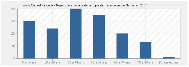 - Hommes de 0 à 14 ans habitant Neuvy : 30