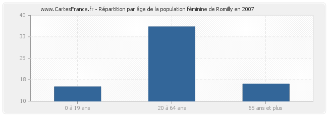 Répartition de la population féminine de Romilly par âge en 2007 :