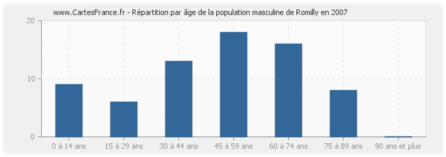 Répartition de la population masculine de Romilly par âge en 2007 :